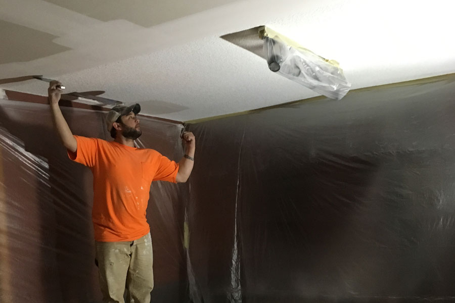 Homeowners have expressed interest in removing those outdated popcorn ceilings. We offer complete ceiling conversions, changing the popcorn to most popular knockdown texture.We stress cleanliness, although it is a process all floors, light fixtures, furniture are covered to keep dust down to minimum.